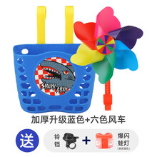 儿童自行车车篮童车滑板车前车筐单车车篮子前挂蓝车篓框置物配件 升级版加厚车篮-浅蓝色+铃铛+爆闪蛙灯+六色风车(