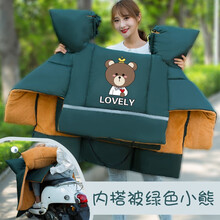 超辉电动摩托车挡风被冬季加绒加大加厚电瓶电车自行车防晒防风罩衣秋冬天踏板三轮车亲子儿童后座防水防寒 加绒内搭被-绿色小熊