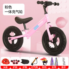 儿童平衡车 无脚踏宝宝滑行车1-3-6岁小孩2轮玩具自行车幼儿滑步车歌途乐 粉色【PU一体轮】14寸 头盔+护具
