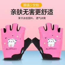 永久 儿童骑行手套薄款夏季半指手套自行车滑板车男女孩户外运动骑车装备 少女粉 L码