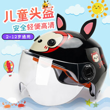 儿童头盔女孩夏季电瓶电动车头盔半盔灰卡通男女小孩宝宝可爱安全帽 黑色阿狸(配透明高清镜片)