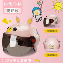 儿童头盔男女童夏季电动车头盔防晒电瓶车宝宝头灰盔四季通用安全帽 粉色小熊【防晒镜片】