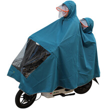 母子儿童亲子双人小孩雨衣电动车自行车电瓶车摩托车加大加厚雨披 后置湖蓝色加大双面罩 XXXL