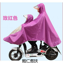 母子儿童亲子双人小孩雨衣电动车自行车电瓶车摩托车加大加厚雨披 前置玫红色XXXL 无面罩款 XXXL