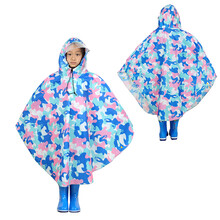 儿童斗篷式雨披自行车电动车后座小学生宽松套头雨衣中童可背书包 羽帛 大帽檐斗篷迷彩粉 XL