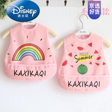 迪士尼官方品牌夏天小孩吃饭吃奶防脏衣服的新款男女婴儿童吃饭围兜罩衣防水围兜食饭兜宝宝围嘴口水巾AB版 0661粉2 均码(0-2岁)