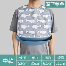 老人吃饭用围兜大人口水围围脖用吃饭专用兜兜软围兜衣服免洗老年人老人围嘴流兜 蓝色鲸鱼-L码【方巾1条】