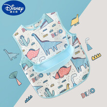 迪士尼宝宝吃饭围兜小孩喂食口水巾婴儿夏季防水辅食餐巾围嘴食饭兜防脏 无袖双兜罩衣-小恐龙90码(建议0-2岁)
