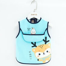 承莉宝宝吃饭围兜防水婴儿免洗食饭兜儿童罩衣男女围嘴口水巾无袖围裙627pj 无袖款嗨吃鹿【蓝色】 小码【建议0-2周岁】