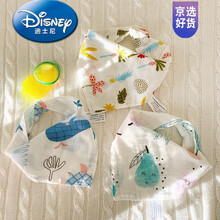 Disney/迪士尼官方品牌夏天小孩薄款口水巾三角巾竹棉纱布围嘴宝宝婴儿童围饭兜吸水吸汗夏季透气 (夏季竹棉纱三角巾)花系 3条