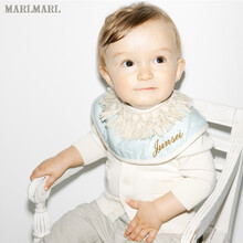 MARLMARL 婴儿口水巾宝宝围嘴围兜圆形360度可旋转新生儿礼物 organic04粉蓝流苏 1.无刺绣+普通包装 新生儿-2岁