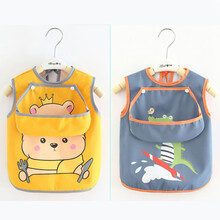 RPNK宝宝吃饭围兜儿童防水罩衣夏季薄款无袖围裙口水巾食饭兜婴儿围嘴 两件装【小熊黄色+鳄鱼蓝色】 90 【建议0-2岁】