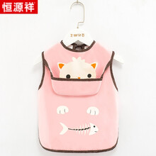 【特价】恒源祥儿童罩衣夏季薄款宝宝吃饭围兜无袖防水防脏围嘴男孩女童反穿护衣夏天小孩子穿 粉色可爱猫 100(100小号(适合0-3岁宝宝))
