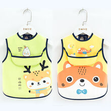 小孩子防水防脏衣服外套宝宝吃饭围兜婴儿免洗食饭兜儿童罩衣男女围嘴口水巾无袖围裙 高品质 嗨吃鹿【绿色】+飞机熊【黄色】 小码【建议0-2周岁...