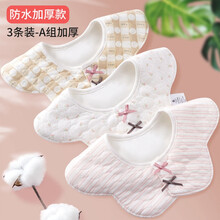 迪士尼同款【夏季上新】【3条装】纯棉围嘴口水巾婴儿防水饭兜男女宝宝防水360度旋转围兜 3条装-加厚款A组