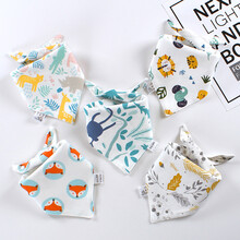 迪士尼宝宝纯棉双层三角巾 春秋冬婴儿双按扣可调节新生儿口水巾 围嘴兜 5条装-动物丛林系(防水款)
