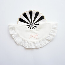 假领可旋转卡通口水巾夏季薄款婴儿围嘴宝宝造型围嘴假领男女童口水兜 粉蝴蝶结白花边 通用码