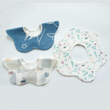 迪士尼婴儿口水巾纯棉男宝宝女夏季薄款防水围嘴男宝夏天透气可水洗围兜 防水【蓝绿系】3条装-四季款0-3岁 L