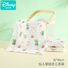 ℑ迪士尼(Disney)婴儿纱布毛巾洗脸纯棉新生儿口水巾超软长方形洗澡宝宝儿童小方巾 30x50cm草莓+仙人掌+涂鸦3条装