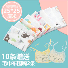 10条纯棉纱布手帕婴儿四季口水巾洗脸巾手绢全棉薄款新生儿喂奶巾 【双层】10条送毛巾布围嘴2条 -25*25棉纱