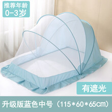 迪士尼官方·网婴儿蚊帐可折叠全罩式防蚊罩宝宝床上新生儿通用大号静音防摔遮光 升级款蓝色(遮光)-中号