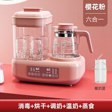 【新品】恒温 调奶器奶瓶消毒器烘干三合一暖奶器温奶器二合一自动恒温热奶婴儿 粉色(消毒烘干调奶暖奶蒸食)六合一