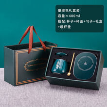法岚仕邦 暖暖杯55度恒温杯垫自动加热垫热牛奶温奶器水杯垫保温碟礼盒 墨绿色-暖暖礼盒套装【三年换新】