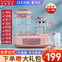 pattywella恒温水壶奶瓶消毒器温奶器调奶器带烘干暖奶器保温多合一婴儿消毒柜冲奶粉消毒锅 樱花粉 18功能豪华款+暖奶蓝+赠品包