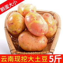 新鲜土豆 云南红皮黄心小土豆现挖现发土豆马铃薯火锅新鲜蔬菜食材 大土豆5斤(比鹅蛋还大)【5斤拍两份合并为一个包裹发净重9斤】真正红皮黄心土豆,不以次充好,不黑心,高原品种合作88号果形圆润大小匀均,粉糯香甜云南黄金蜜薯