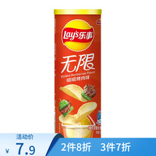 乐事(Lay's)无限薯片零食休闲食品104g罐装膨化食品一口吃N片大挑战张杰同款 嗞嗞烤肉味104g