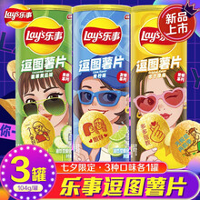 【斗图限定】乐事逗图薯片新品无限罐装104g印花薯片斗图薯片告白图案薯片送闺蜜送男友 乐事-逗图薯片原味1罐+黄瓜味1罐+青柠味1罐
