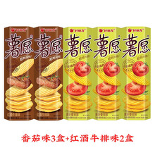 好丽友 薯愿*5罐混合装薯片焙烤非油炸蜂蜜黄油牛排番茄原味膨化儿童休闲零食 【5盒组合】番茄味3盒+红酒牛排味2盒