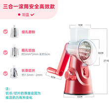 天喜(TIANXI)手动切菜机 多功能家用滚筒切片机厨房绞菜神器擦土豆丝黄瓜丝萝卜丝刨丝器灌肠机 红色款