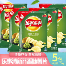 乐事薯片清新芥香味芥末味新口味休闲膨化零食大礼包 乐事-清新芥香味70g*5袋
