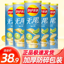 乐事(Lay's)无限薯片原味桶装薯片休闲食品 104g番茄烤肉黄瓜青柠味零食礼包办公休闲小吃 青柠味104g*5罐
