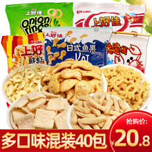 上好佳薯片虾片虾条50包批发整箱大礼包好吃的休闲膨化零食品小吃 鲜虾片20包+蟹味逸族20包