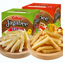 日本进口calbee/卡乐比薯条80g*2盒 北海道网红膨化薯片零食 淡盐味80g+黄油酱油味80g