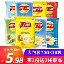 乐事薯片原味70g*10袋/6袋大包袋装原味黄瓜青柠味整箱办公室休闲膨化居家追剧顺利礼包零食小吃 【混合10袋组】多口味混合70gX10袋