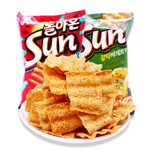 韩国进口好丽友sun太阳玉米膨化80g*5袋辣味/蒜香味波浪薯片锅巴办公室休闲零食 玉米片2个口味各一