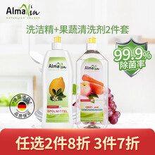 Almawin德国进口果蔬清洗剂 除菌除农药残留清洁剂欧盟有机认证水果蔬菜果蔬净专用清洗液 500ml+厨房餐具柠檬洗洁精500ml套装【爆款商品2件8折、3件7折】专注有机家庭清洁26年,通过欧盟有机认证。