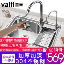 华帝(VATTI)台下盆水槽一体拉伸单槽套装304不锈钢洗菜盆家用加厚洗菜池水盆带下水套装 091103XA(75*45)不锈钢龙头+净水龙头华帝(VATTI)台下盆水槽一体拉伸单槽套装304不锈钢洗菜盆家用加厚洗菜池水盆带下水套装 091103XA(75*45)不锈钢龙头+净水龙头