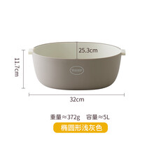 肆月净浥 双层洗菜盆沥水篮 厨房家用洗水果塑料控水篮菜篮收纳 椭圆形浅灰色【7.30-8.7日店铺促销】部分商品满2件9折,3件8折,立即下单!
