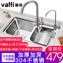 华帝(VATTI)304不锈钢加厚水槽双槽台下盆厨房一体成型洗菜盆大单洗碗水池家用套餐带下水套装 091204A(780*430)龙头+净水龙头华帝(VATTI)304不锈钢加厚水槽双槽台下盆厨房一体成型洗菜盆大单洗碗水池家用套餐带下水套装 091204A(780*430)龙头+净水龙头
