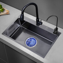 PULT黑色厨房纳米水槽不锈钢洗菜盆手工单槽304洗菜池洗碗槽水池台下 抽拉+净水全套(配6188+净水龙头) 大下水 720x450常规下水或18.5cm大下水,纳米涂层不沾油,晒图评价送沥水卷帘!