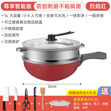 阿里达达 电炒锅电子锅多功能麦饭石电炒菜炒锅插电家用一体式炒菜锅微压蒸煮炒无烟不粘锅32CM 【可用铁铲】智能款红1800W+微压玻璃盖带蒸笼