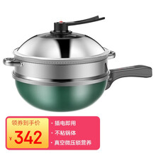电炒锅炒菜不粘锅定制蒸煮两用宿舍插电锅优卓家用一体电炒菜锅电火锅预售 绿色智能款真空组合盖不锈钢蒸笼麦饭石锅面大礼包
