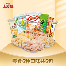 上好佳 鲜虾片+鲜虾条+洋葱圈+玉米泡+玉米卷+芝士条 6种口味 共6包休闲零食