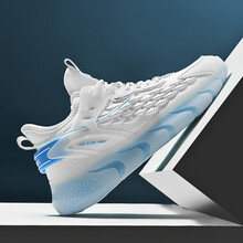 String Bio 联名椰子透气男鞋夏季运动休闲鞋男老爹鞋飞织鱼鳞透气鞋爆米花软底跑步鞋男时尚增高 白蓝 42