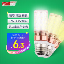 格润莱特led灯泡 三色变光 e27螺口灯头5w 超亮吊灯筒灯光源 柱形玉米蜡烛型节能灯 5W 三色变光 E27(促销价)