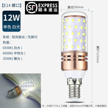 LED玉米灯泡恒流超亮三色变光大小螺口节能灯泡家用12W16瓦 12W白光E14螺口(恒流无频闪)